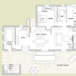 Bu dairede küçük mutfak, giyinme alanı, kanepe vardır. Bu daire 4 yatak odasından, mutfaktan ve 2 banyo odasından oluşur.